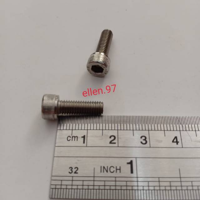 Baut L stanless steel murni 304 / A2 - 70 anti karat Ukuran Diameter > 5mili Panjang > 1,5cmPakai kunci L4 Harga tertera untuk