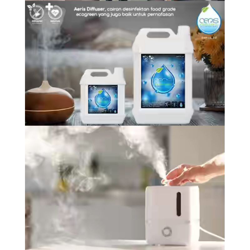 Aeris diffuser merupakan cairan non chemical yang digunakan sebagai disenfectan,terapi uap,campuran minuman tanpa bahan pengawet tanpa alkohol.sehingga aman baik kena makanan atau sedikit sengja dminum.ukuran kemasan dalam 1