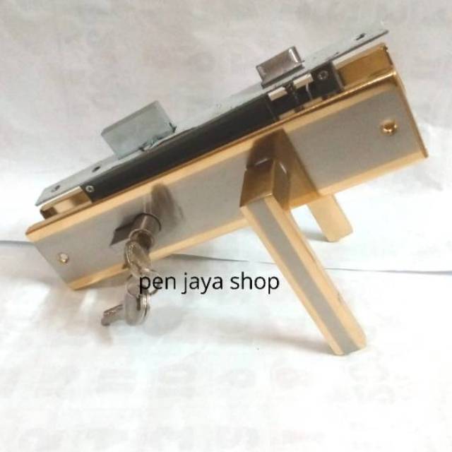 - kunci pintu besar / handle besar / gagang pintu ukuran besar.- warna gold (kuning) kombinasi silver.- satu set tinggal pasang.- panjang plat 25cm dan lebar 5.5cm.- ketebalan plat handle 2mm.- silinder kunci komputer key, anak kunci 4 pcs.- spesifikasi body kunci atau lock case, panjang plat luar body 24cm, panjang body dalam 17cm dan lebar body 6cm.- sebelum kami kirim, barang akan di cek ulang untuk memastikan kunci berfungsi dengan baik.- silakan di coba