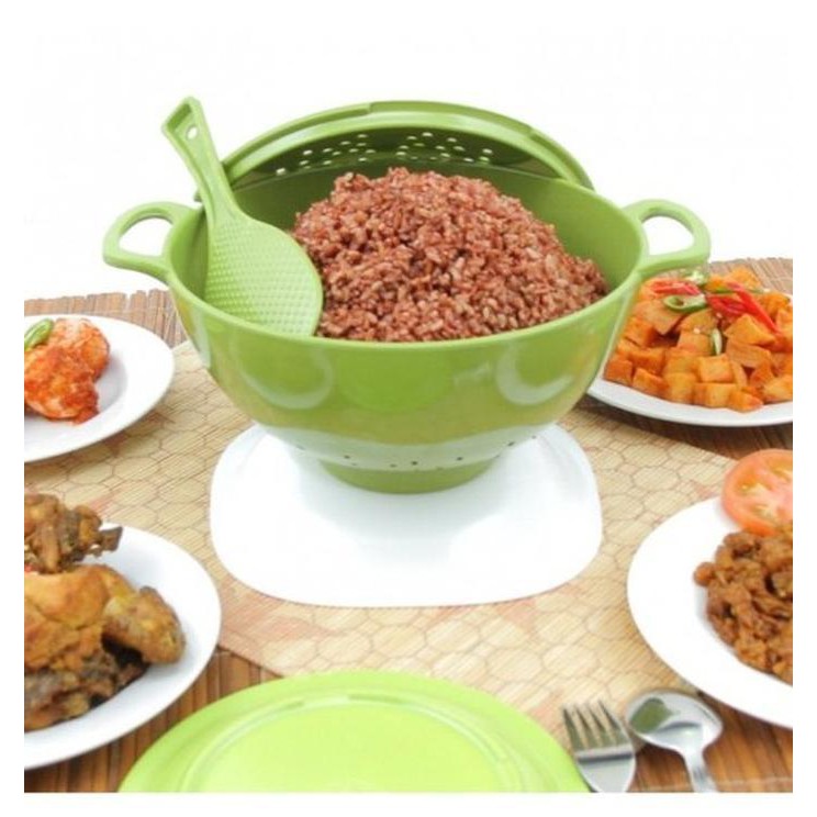 Colander yang didesign dengan full warna elegant yang aman digunakan wadah nasi. Design ini menambah menarik dalam penyajian makanan.